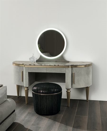 Այս դռներով և դարակներով զարդասեղանը ննջասենյակի համար օգտակար և գործնական դիմահարդարման աքսեսուար է: