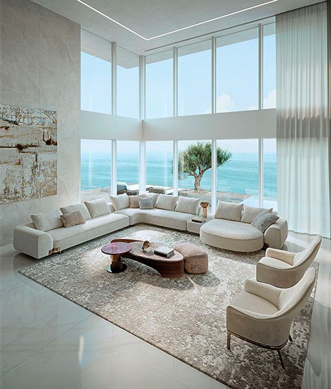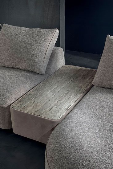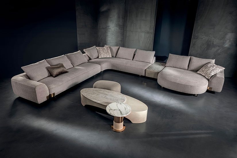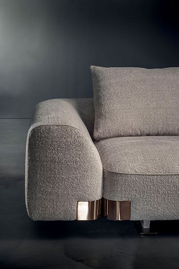 Հավաքածուն բաղկացած է բազմոցներից և տարբեր չափերի մոդուլային տարրերից: Շրջանակը պատրաստված է փայտից, մինչդեռ դիմացկուն ճկուն PVC շերտերը պահում են տարբեր խտության պոլիուրեթանային փրփուրից պատրաստված նստատեղը՝ MEMORY FOAM-ով: Մեջքի բարձիկները լցված են ստերիլիզացված սագի փետուրներով: Ոտքերը պատրաստված են փայտից և ծածկված են կաշվով և/կամ գործվածքով՝ համապատասխանեցնելով մետաղական հիմքին, որը ներկված է բրոնզե գույնով: Նստատեղի յուրաքանչյուր կողմում կա էլեգանտ կիսաշրջանաձև մետաղական թիթեղ, որը հասանելի է հետևյալ գույներով՝