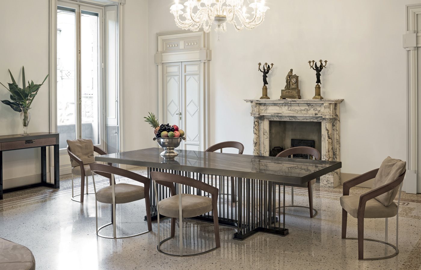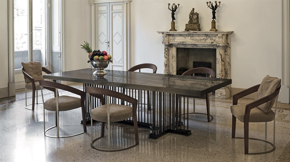 Ինչպես կոնսոլային սեղանը, Շուբերտի սեղանն էլ առանձնանում է խաչաձև մոտիվով նրբագեղ հիմքով և առաջարկում է հետաքրքիր համադրություններ. փայտե կորպուսը աննկատ մետաղական եզրով պահում է յուրօրինակ խողովակաձև ձողային շրջանակը։