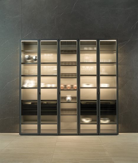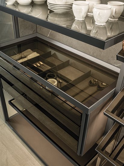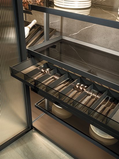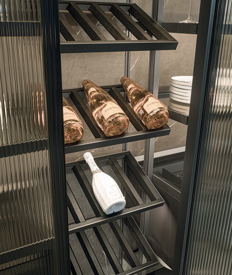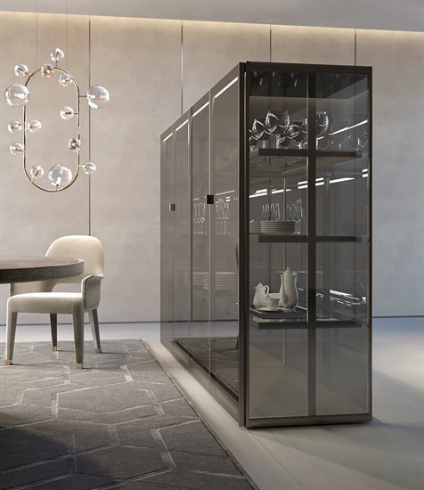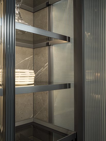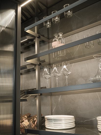 ապակե հետևի վահանակ՝ կղզյակ տեղադրելու համար, և յուրաքանչյուր մոդուլը բաժանող պրոֆիլ, որը թույլ է տալիս զգեստապահարանի դռներին անթերի համադրվել բուազերի վահանակների հետ: Յուրաքանչյուր դարակի LED լուսավորությունը բարելավում է տարածքը և ստեղծում հաճելի մթնոլորտ: