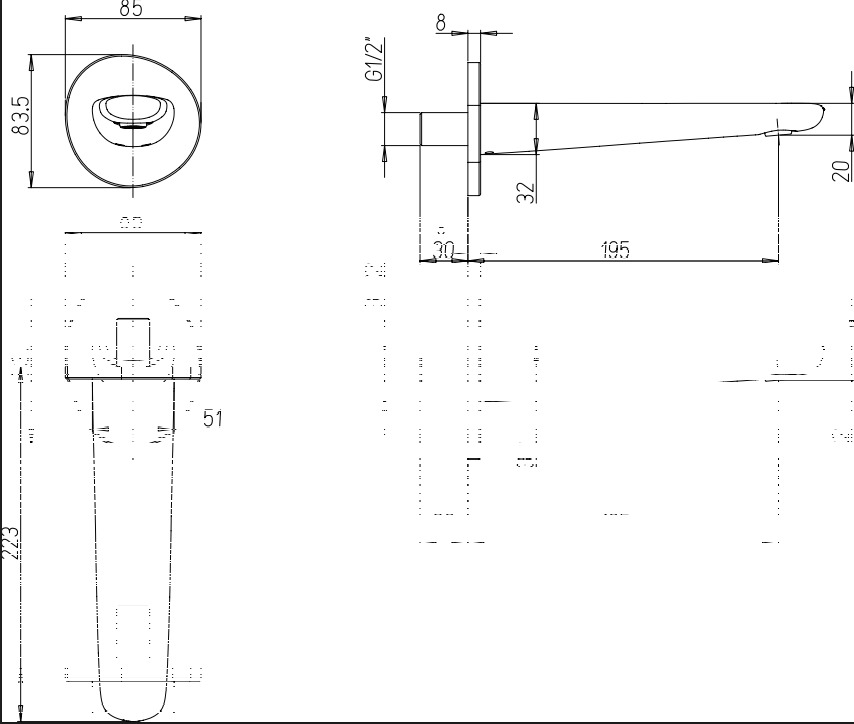 Պատին ամրացվող վաննայի ծորակ։